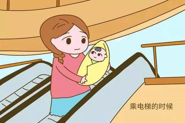 7、在商场或地铁等公共场所使用儿童推车时,应乘坐直梯,或者把婴儿从婴儿车中抱出,抱在手里。