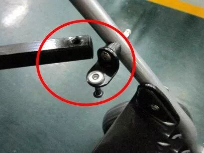 4、使用前要进行检查。如前后轮轴的螺母是否锁紧、车架结构是否有损坏、车架连接处的铆钉等有无松动、刹车系统是否有效、车把把套是否移动,是否存在尖端、毛刺、锐边、突出物等等。