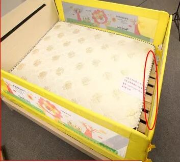 如果儿童床护栏产品上没有标注推荐床垫的尺寸,消费者在使用过程中有可能忽视这些使用细节,护栏组合安装后与床垫之间形成的缝隙,极端情况下可能造成儿童窒息甚至死亡的伤害。监测信息显示,国内外都发生过护栏与床垫周围的空隙使儿童陷入、造成婴儿不幸死亡的相关案例。