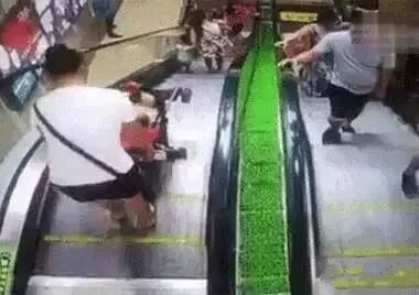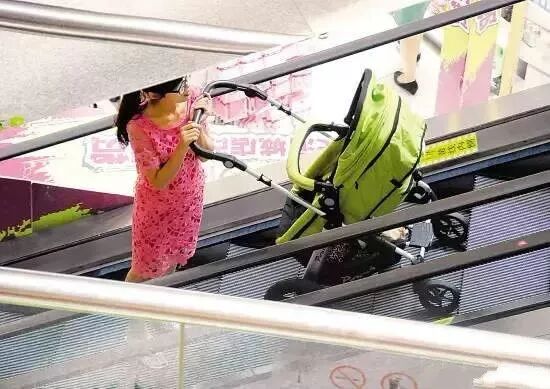 △使用儿童推车乘坐扶梯时应抱起婴儿