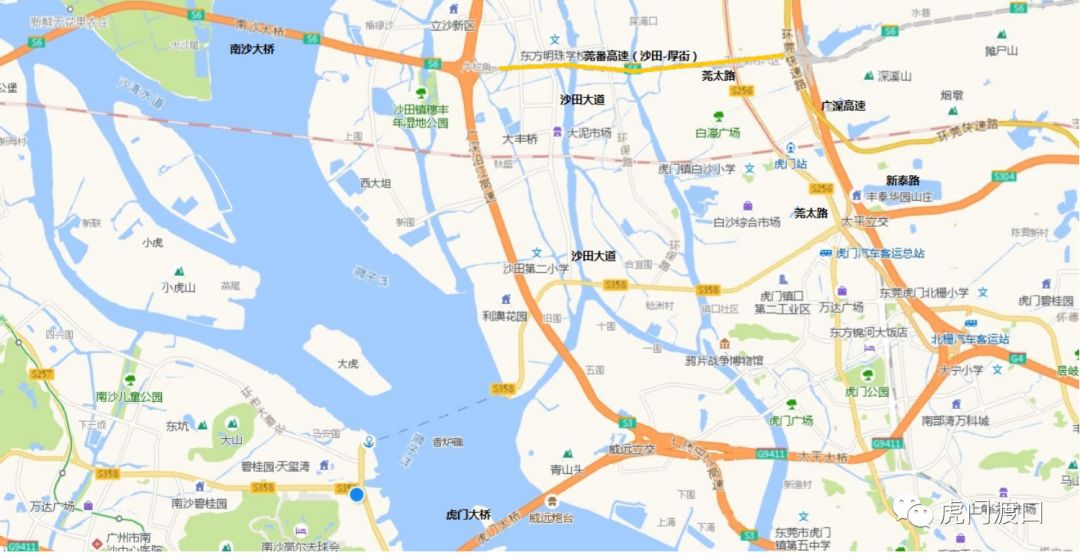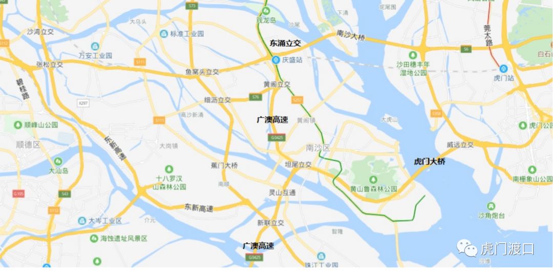 虎门渡口停止渡运后车辆绕行示意图(广州)