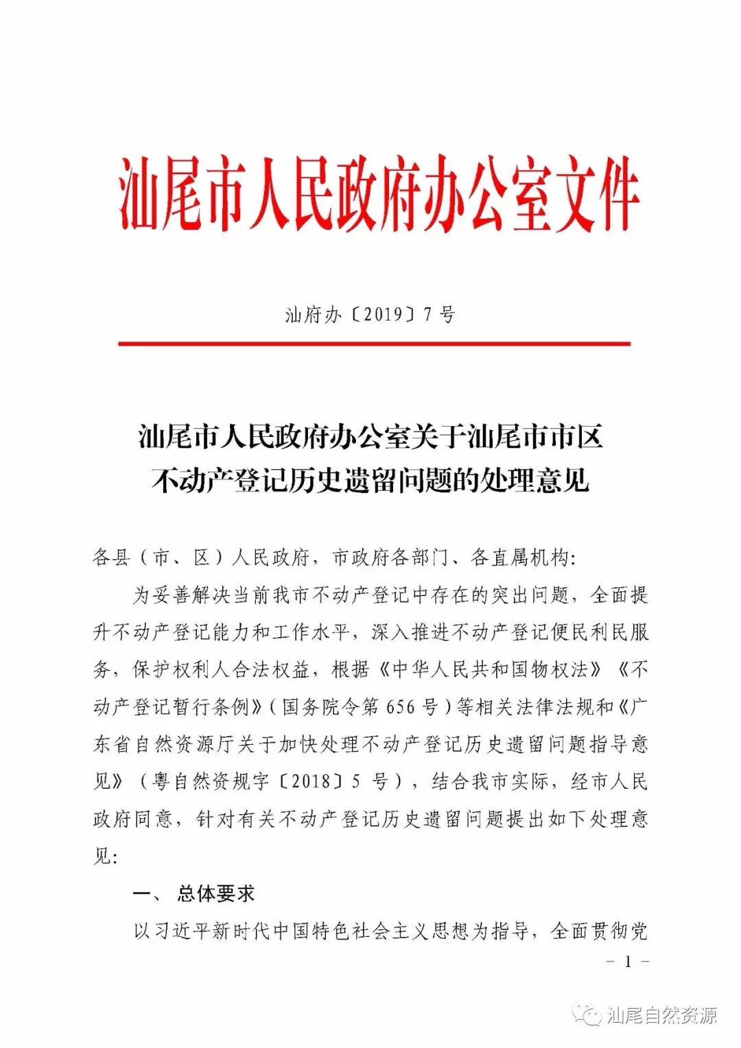 为妥善解决当前我市不动产登记中存在的突出问题,全面提升不动产登记能力和工作水平,深入推进不动产登记便民利民服务,保护权利人合法权益,市政府印发了《汕尾市市区不动产登记历史遗留问题处理意见》(以下简《意见》)。《意见》的出台是全面完成不动产统一登记“最后一公里”冲刺所必须踏出的关键一步,是打造服务型政府的重要举措。