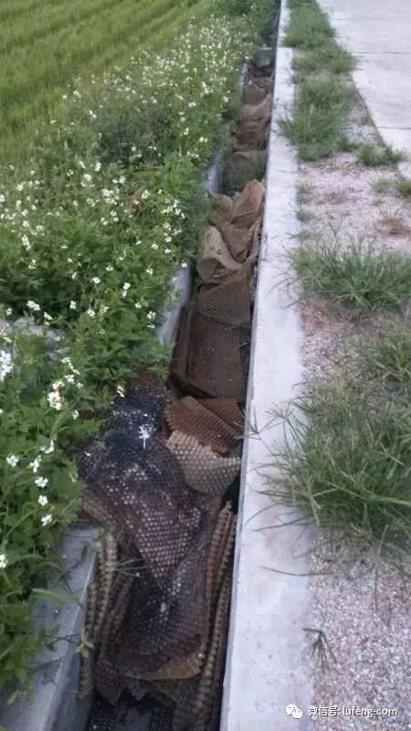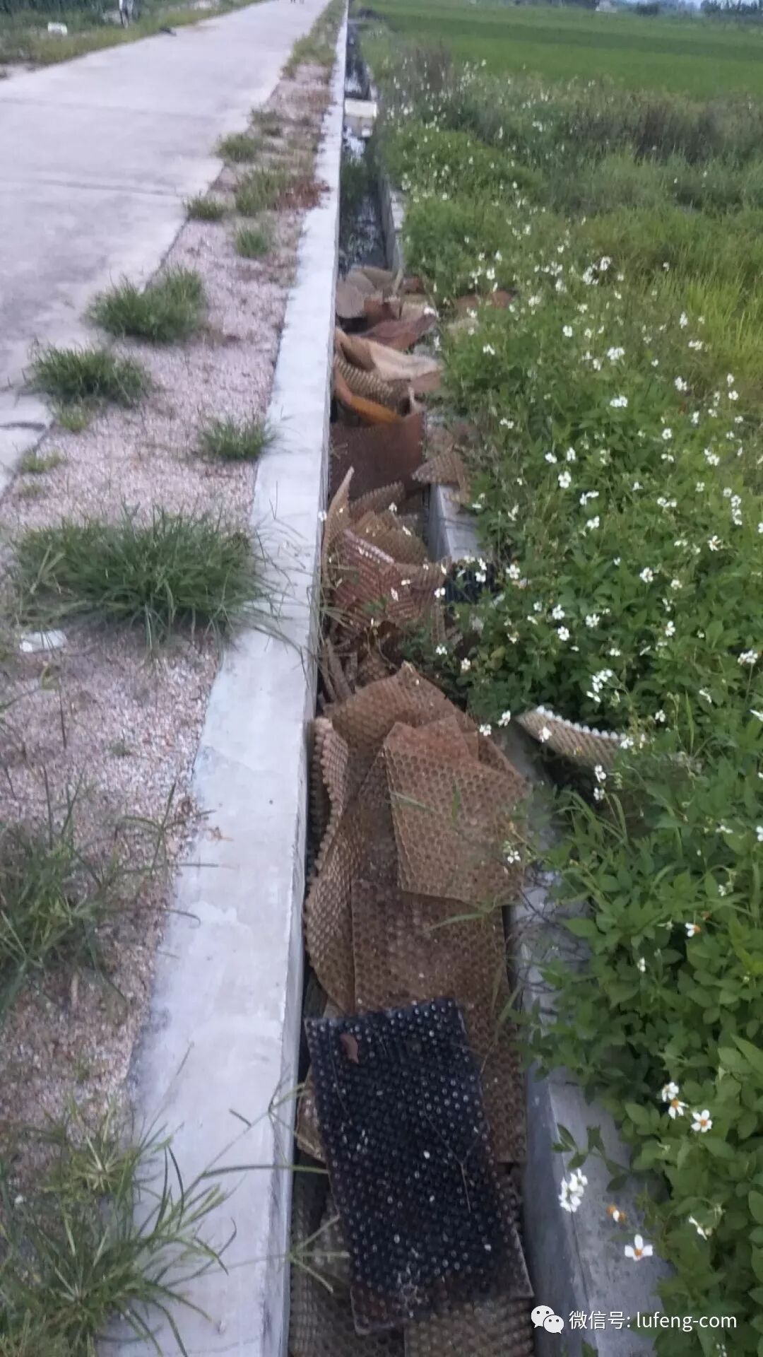 原来是个别村民插完稻秧后随意丢弃的稻秧苗盘模,这样会堵塞水沟破坏水利设施。