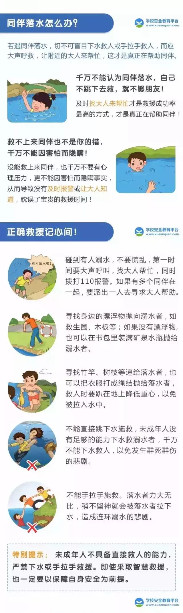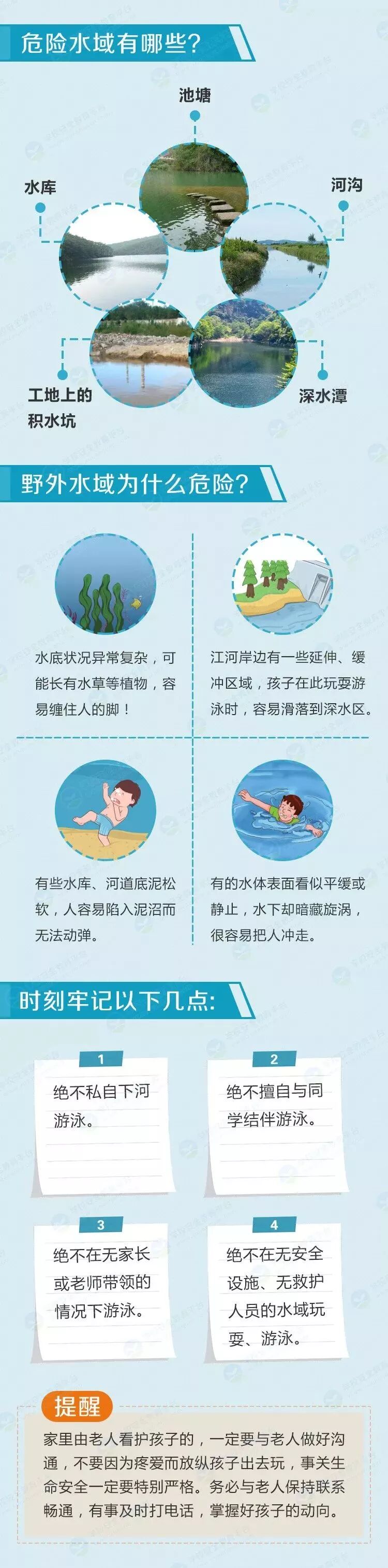 4月份以来,宁夏贺兰县、海南琼海市、江西九江市、广东东莞市、湖北松滋市等地相继发生溺水事故,造成19名学生溺水死亡,教训惨痛。5月10日,国务院教育督导委员会办公室特发布2019年第2号预警,这是一个月以来,国务院教育督导办第2次发布防溺水预警,提醒各地教育行政部门和学校织牢防溺水“安全网”,坚决防范溺水事故的发生,确保学生安全。
