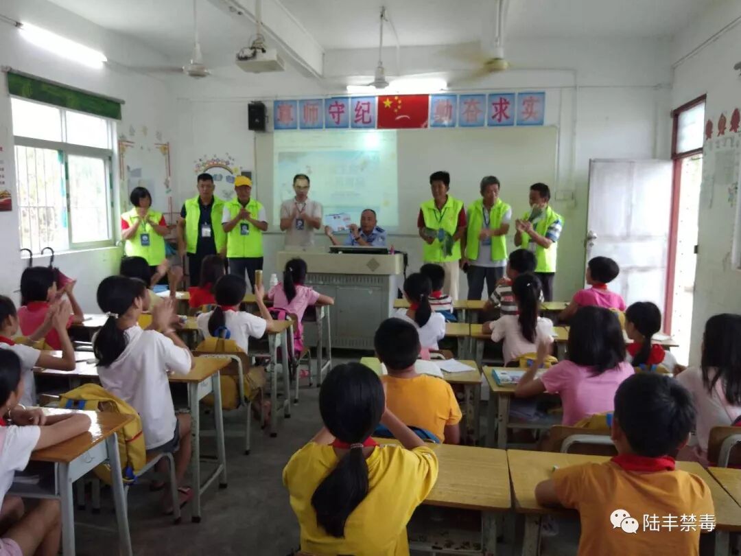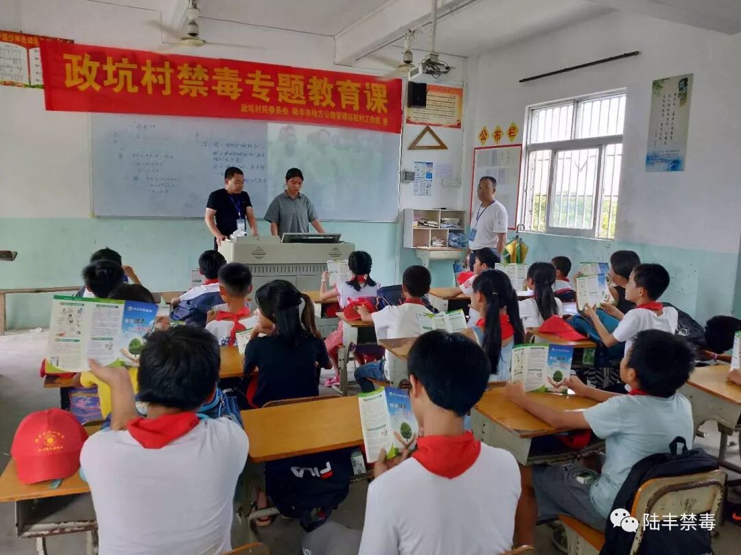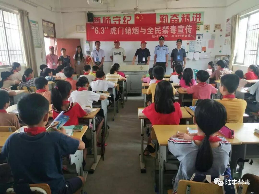 6月3日,陆丰市食品公司驻村工作组、甲东镇驻村干部和陆丰市公安局民警驻村挂职副书记、后洋村两委干部联合组织禁毒志愿者服务队,在后洋小学以“6.3”虎门销烟纪念日历史教材,进入教室组织班会讲座,开展对毒品的预防教育宣传活动,增强广大青少年“珍惜生命、远离毒品”思想觉悟。