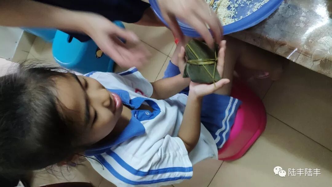 孩子吃起来连连称赞自己包的粽子真香真好吃![]()