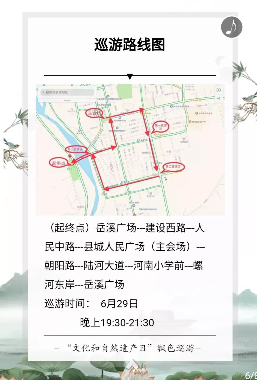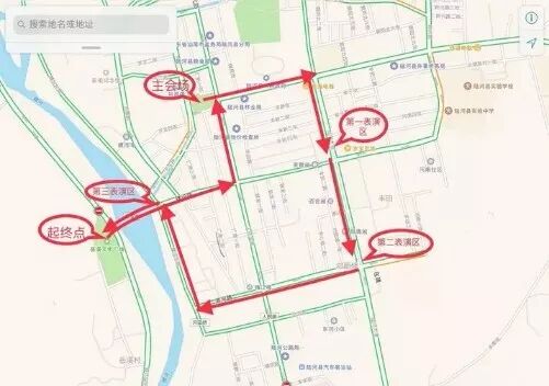 (起终点)岳溪广场——建设西——人民中——县城人民广场(主会场)——朝阳路——陆河大道——河南小学前——螺河东岸——岳溪广场(时长1.5—2个小时,全程约3公里,表演区共3个)