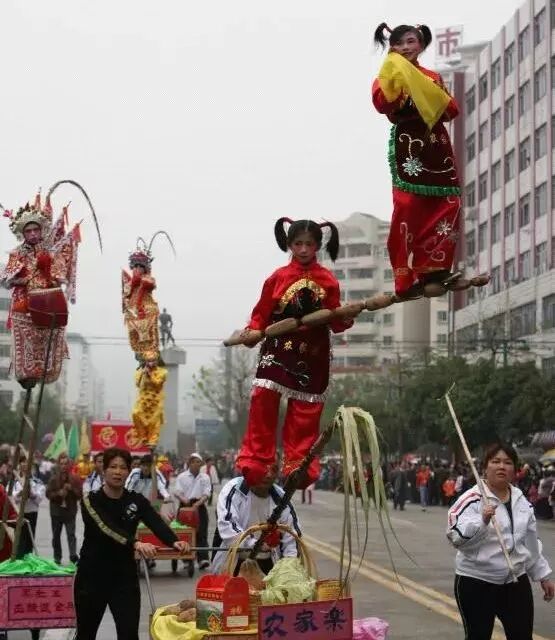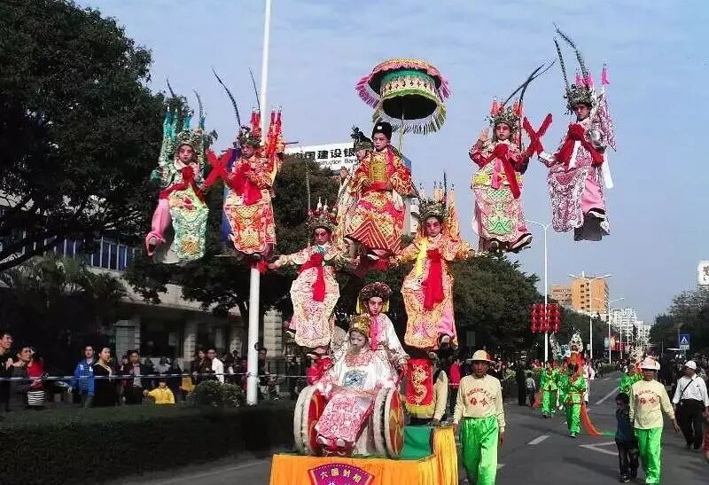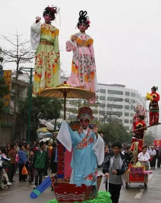 陆河飘色:称“河田高景”, 俗称“河田撑景”、“出景”或“吉康庙景”。