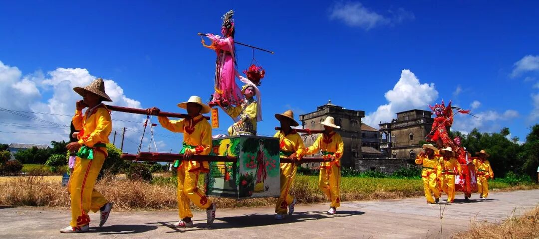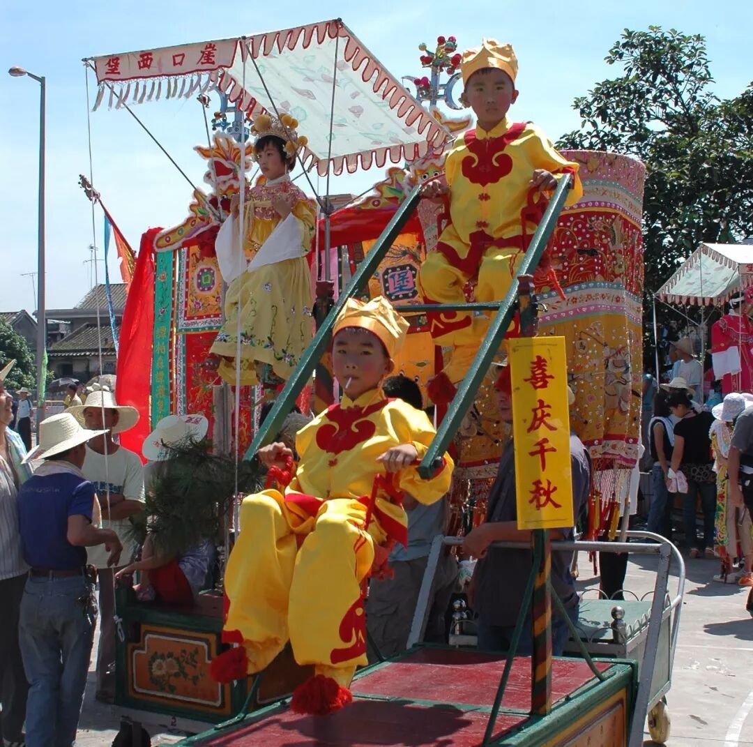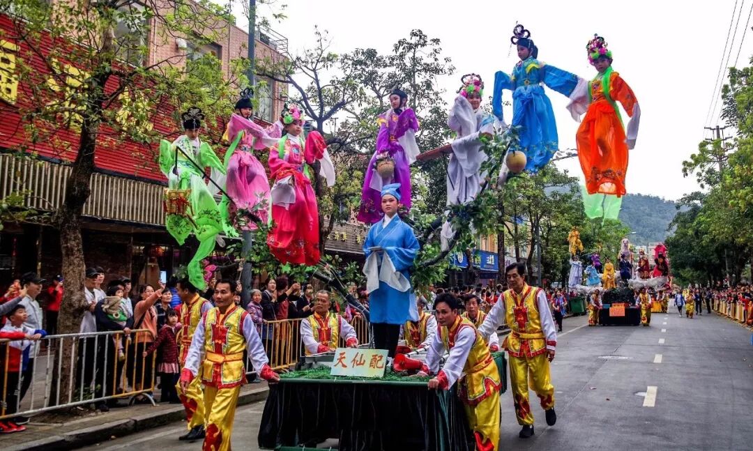 乾务飘色:明朝天启年间从江西传入,融合戏剧、杂技和装饰艺术,配以八音锣鼓、彩旗巡游。