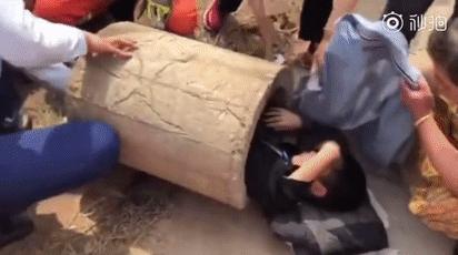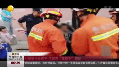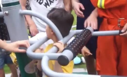公共健身器材大小不一,但不是每一种器材都适合所有人,所以有些熊孩子乱玩就被卡住了。