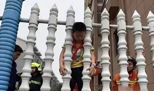 长条状的铁质栅栏,往往会给调皮的小孩带来麻烦。有的将手臂伸进去,或者脚踩下去,甚至把头伸进去,被卡住后的情况都非常危险。