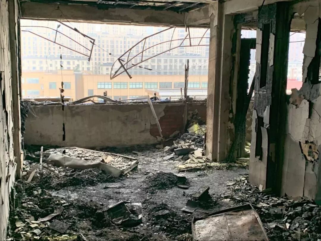 最终,客厅被烧的一片狼藉,精装变成了毛坯房。