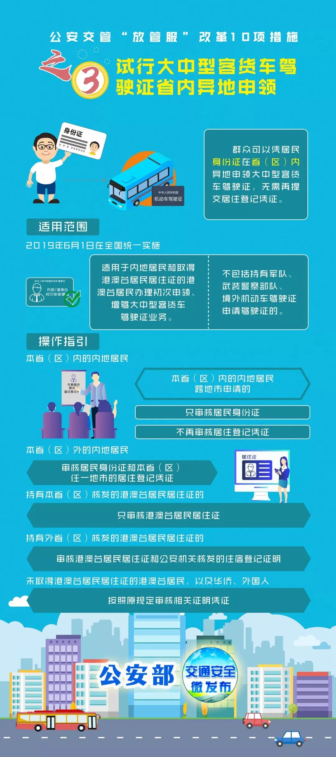 对省(区)内异地申领大中型客货车驾驶证的,申请人可凭居民身份证直接申请,无需再提交居住登记凭证。