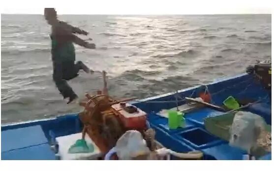 2019年6月15日早上5点,红海湾渔政大队在金屿岛附近海域巡逻时,发现3艘涉嫌偷捕渔船,现扣押回临时停船点进行下一步处理。其中一艘涉嫌灯光围捕渔船在被发现时,拒不配合并跳海企图躲避处罚。