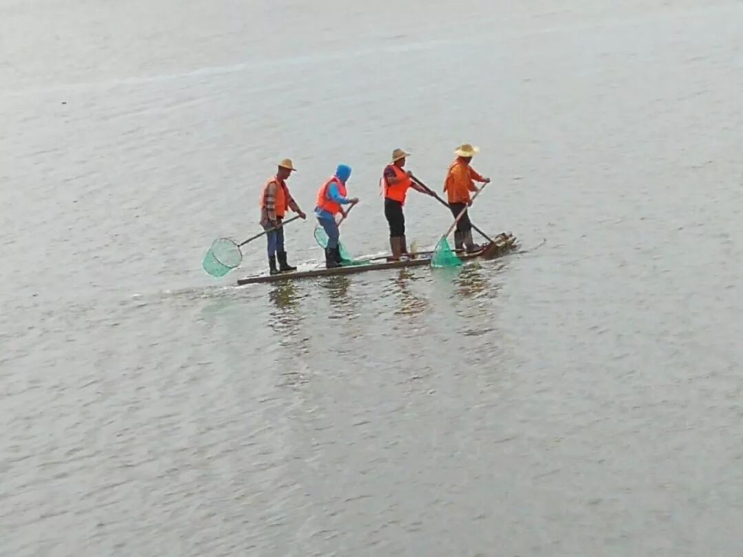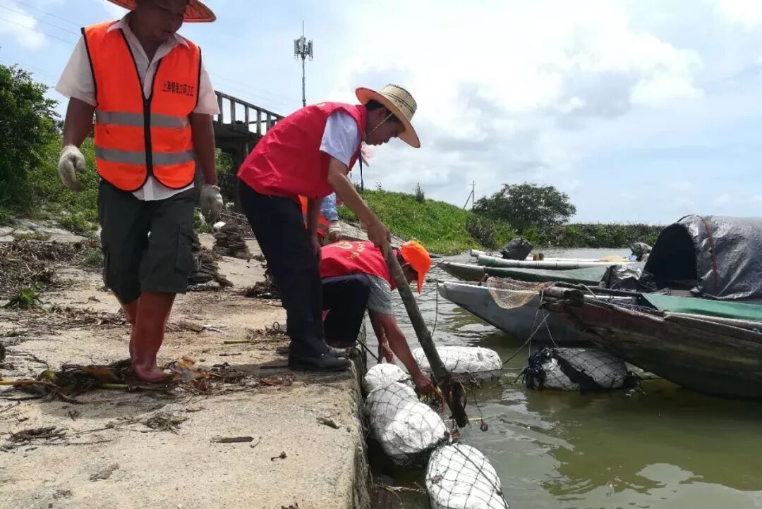 此次行动共出动人员200多人,快艇2艘、渔船6艘,挖机2部,共清理渔虾网20处,蚝排400平方米,水浮莲300平方米,水面漂浮物、生活垃圾及建筑垃圾8吨。