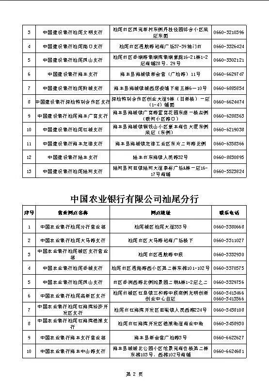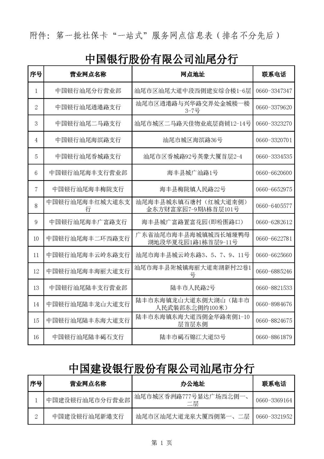 附件:汕尾市社保卡“一站式”服务网点信息表(第一批)