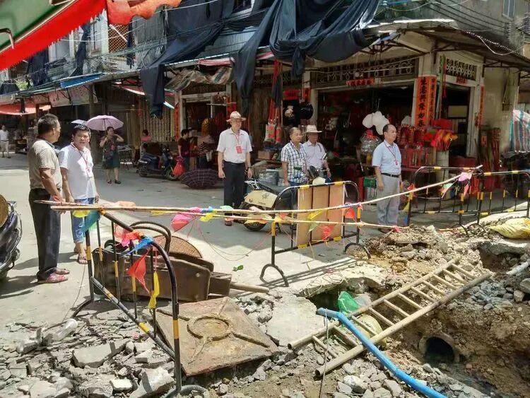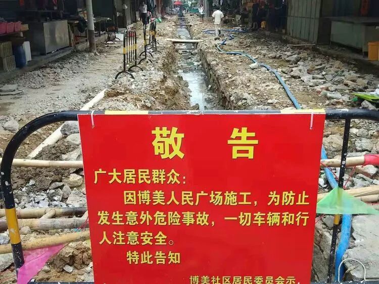 博美人民广场改造施工、街道挖沟,民众经过此路段,要注意安全!