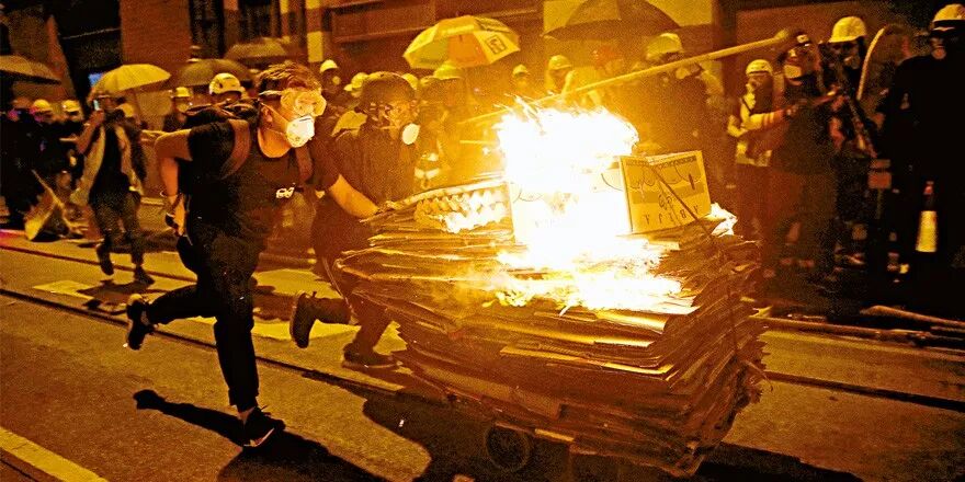 香港警方表示,激进示威者的行为越演越烈,由最初拆铁栏、掷铁枝和砖头,及至到处纵火和大肆破坏。这种行为已经严重偏离和平表达诉求的原则,警方予以强烈谴责。警队有决心、有能力,将违法人士绳之以法。
