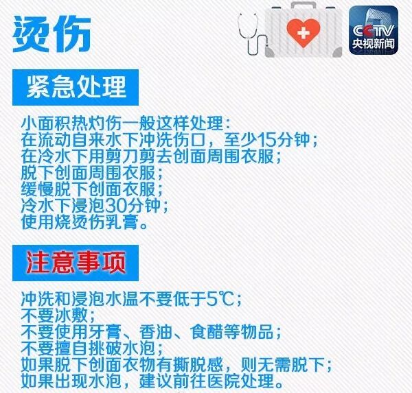 暑假到啦,你准备去哪里玩?中暑、烫伤、扭伤、食物中毒……在外游玩时,万一遇到这些意外怎么办?如果救治不当,很可能造成二次伤害。很多人认为烫伤后涂牙膏、大酱、酱油等有治疗作用,其实,这反而会给医生增加烫伤部位的处理难度,甚至导致感染!医生介绍,遇烫伤,最好的急救办法是给被烫伤的表面进行迅速降温。出游在外,安全第一!戳↓学习急救知识↓转存!