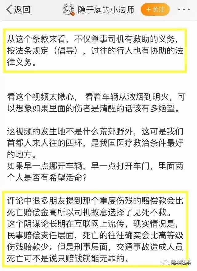 这位淡定无比的前车司机,恐怕他最大的问题不是“冷漠”,而是根本不懂法。不懂法,可能害死别人,也最终会害了自己。