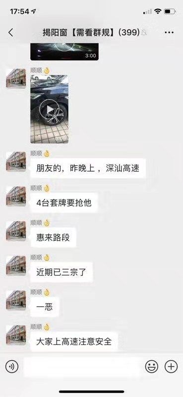 近日,在微信群里看到有个视频在疯传,网友说:在深汕高速惠来路段,有四台"套牌车"想要抢劫一台私家车……