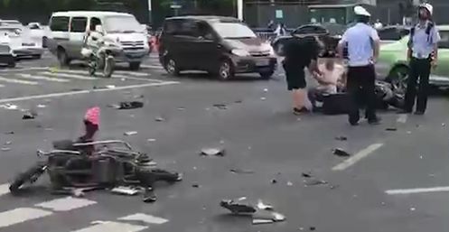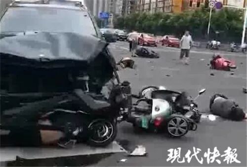 有附近居民称:“当时听到很响的撞击声,地上躺了一地人,七八辆电动车被拉走。”