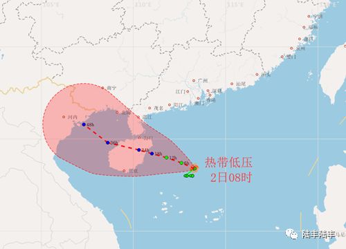 7月1日20时,位于南海北部海面的热带扰动加强为热带低压。2日08时,其中心位于江门台山市偏南方约390公里的海面上,也就是北纬18.4度、东经113.3度,中心附近最大风力7级(15米/秒,相当于54公里/小时),中心最低气压995百帕。预计其将以10~15公里的时速逐渐向西偏北方向移动,较大可能于2日夜间以热带低压或热带风暴级(7级~8级)在海南省东部到雷州半岛沿海地区登陆(登陆海南省可能性更大)。受其影响,2日-3日我省中西部海面风力逐渐加大到6级~8级阵风9级;沿海市县有大雨到暴雨局地大暴雨,其中湛江、茂名、阳江有暴雨局地大暴雨并有6级~7级阵风9级的旋转风。根据《广东省气象灾害应急预案》,广东省重大气象灾害应急办公室已于7月2日08时30分启动气象灾害(台风)Ⅳ级应急响应。