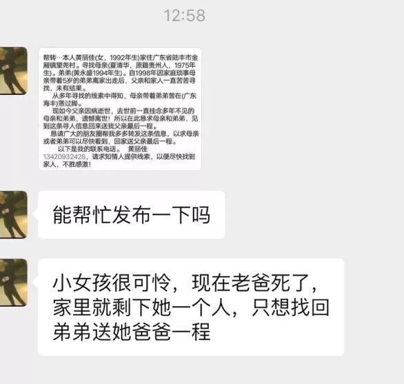 恳请广大的朋友圈帮我多多转发这条信息,以求母亲或者弟弟可以尽快看到,回家送父亲最后一程。
