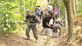 台风“山竹”过境后,驻军与中联办、外交公署及驻港中资企业组成义工队伍,清理麦理浩径。