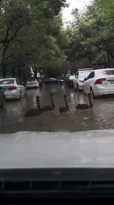 10日15时至16时,上海北部和江苏东南部降雨猛烈,上海徐家汇小时雨量达到54.4mm、嘉定46.3mm;江苏苏州47.8mm、昆山47.3mm。8月10日下午,网上流传出一组天鹅成群结队“荡”马路的视频和图片,引起诸多讨论。部分网友猜测是徐家汇公园或上海动物园的天鹅们趁着台风天湖面上涨集体出游。通过仔细辨别和多方确认,记者了解到,这群天鹅来自松江区九里亭街道的奥林匹克花园小区。这次小区受台风影响,积水达20多公分深,导致天鹅能在小区游荡,目前这群天鹅已经安然回到窝里。台风中的这些身影,帅极了!