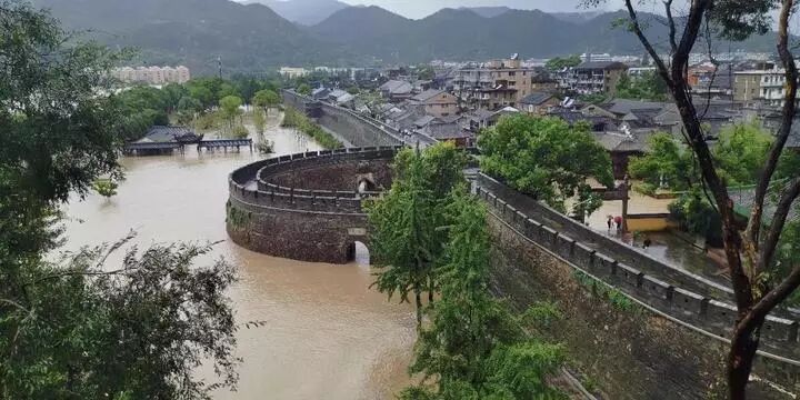 台风给浙江台州临海市带来了严重的内涝,临海市灵江流域发生流域性洪水。临海全市被淹,临海古城被洪水围困,积水最深处一度可达5米。