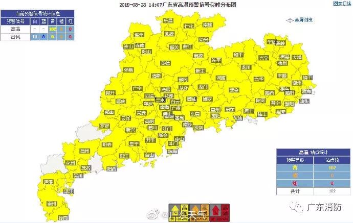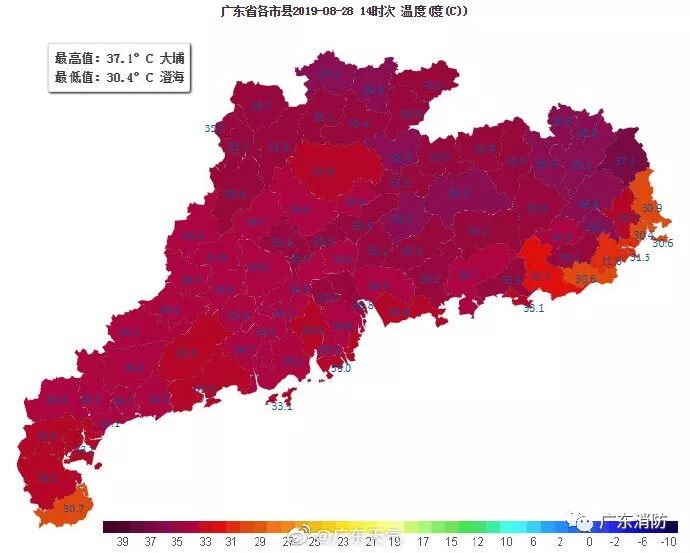 28-29日,广东受副热带高压系统控制+空调外机(吃下沉)叠加影响,全省高温炎热,局部有雷阵雨,大部市县最高气温35℃~37℃,局部38℃。