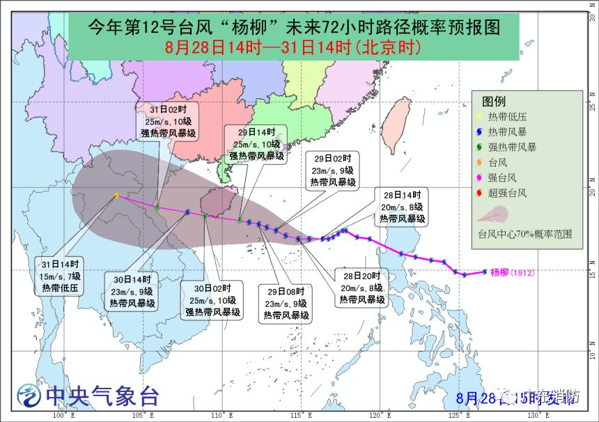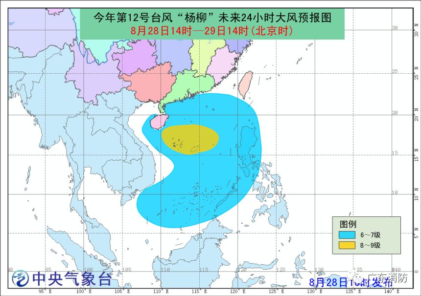 8月28日凌晨,“杨柳”在菲律宾吕宋岛沿海登陆,今晨移入南海东部海面。