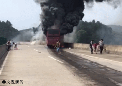 “快,快,下车……”16名高中生在汤师傅的有序组织下,迅速撤离大巴车。汤师傅拿着车载灭火器,到车尾查看,有明火,对着着火处一番操作,但温度太高,火势太大,汤师傅见状立即打119求助。