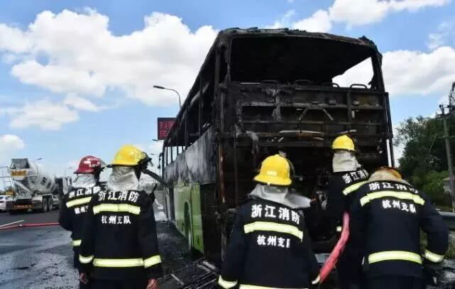 消防员从司机汤师傅了解到,最先着火的是大巴车后侧的发动机。车上当时共有16名高中生,他们是外地到杭州来旅游的,正打算去萧山机场。发现着火后,司机马上疏散学生下车。