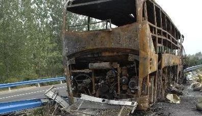 2011年7月22日凌晨4时许,一辆山东威海至湖南长沙的中型客车在京珠高速信阳明港段发生火灾,因客车烧毁严重,车上41人死亡。