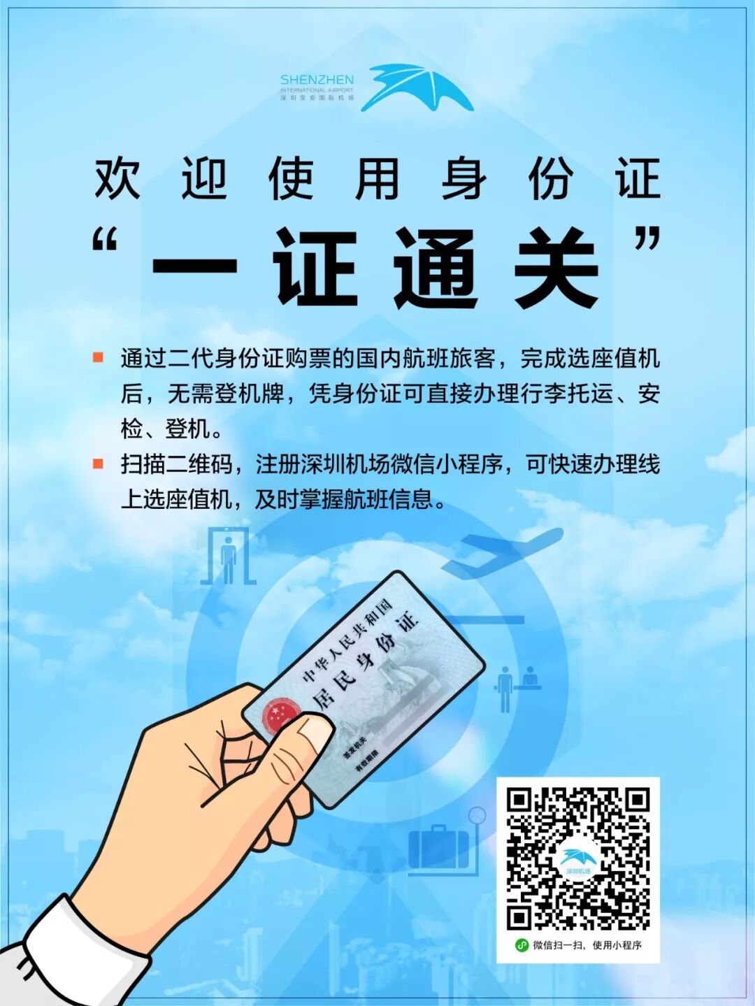 即日起,深圳机场全面试行国内航班身份证“一证通关”服务。