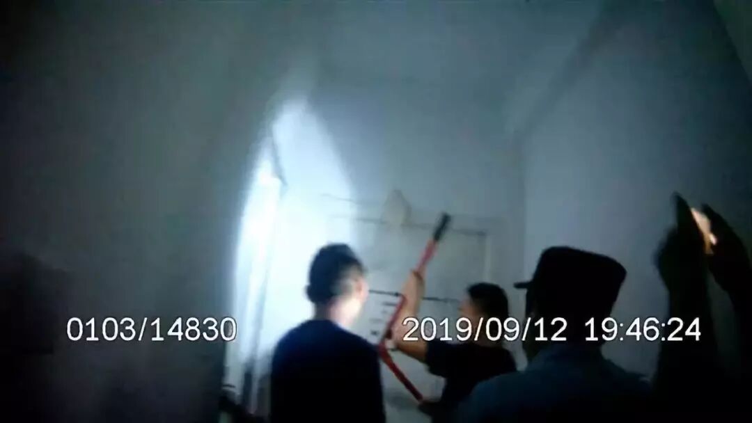 民警和群众站在大门前,不停地对着女童呼喊,让她待在房里不要乱动。很快,消防员使用液压钳夹断大门挂锁,房门终于被打开。