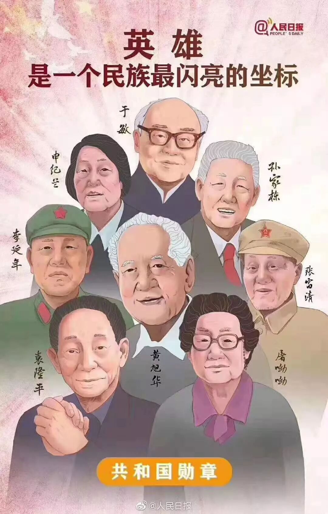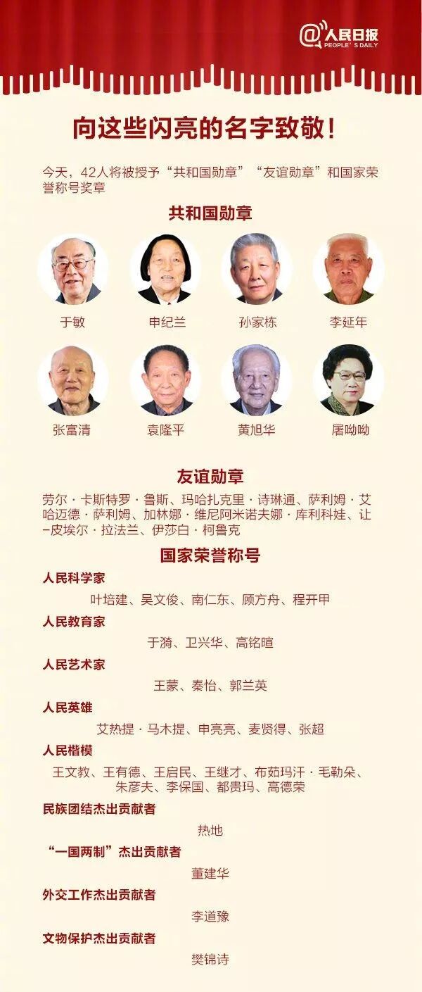 其中,5人被授予“人民科学家”国家荣誉称号,3人被授予“人民教育家”,3人被授予“人民艺术家”,4人被授予“人民英雄”,9人被授予“人民楷模”。