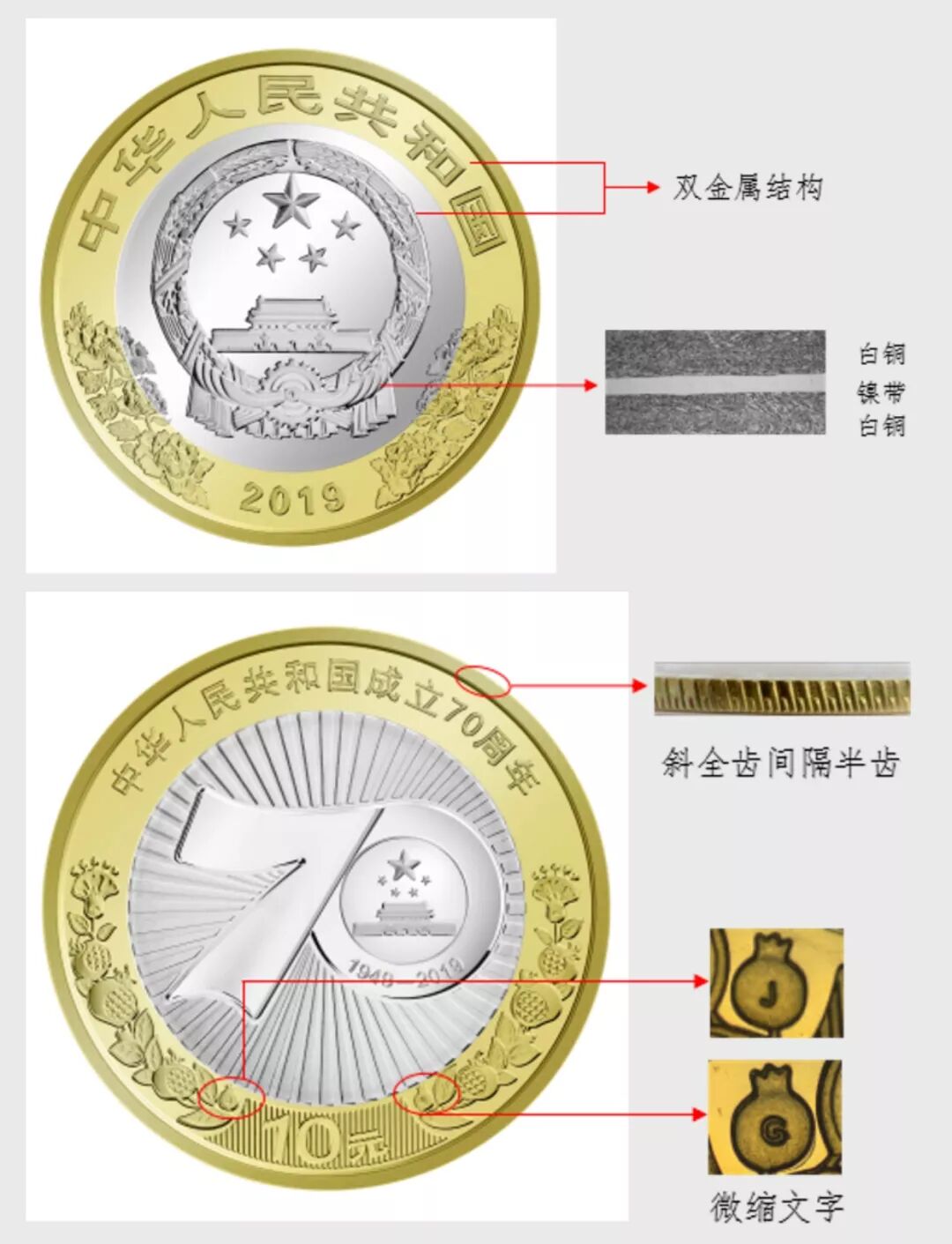 4.中华人民共和国成立70周年双色铜合金纪念币公众防伪特征