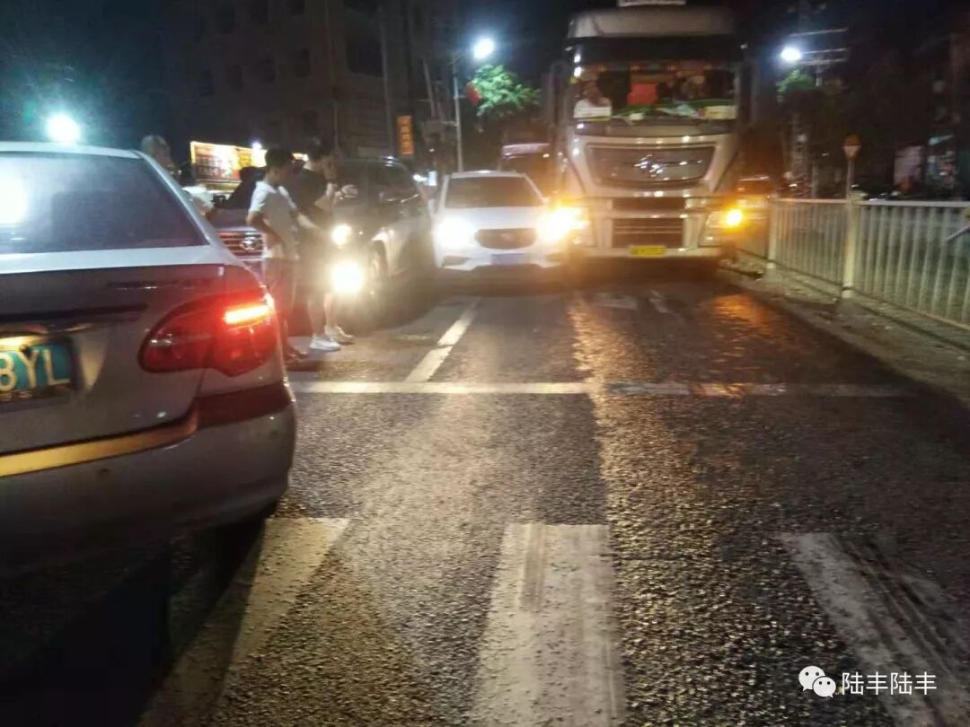 2019年9月28日晚上20:45分左右,在国道G324线陆丰市博美镇八万路口与鳌峰路口处往内湖方向,疑似一小车欲到马路对面的鳌峰路口时逆行?造成对开小车发生连环碰撞,小车距离太近和大货车加上惯性刹不住或刹车不及时造成挤压擦碰,所幸无人员伤亡,交通事故一度造成往内湖方向塞车,随后交警到场处置。事故详情有待相关部门通报为准!