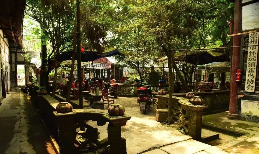 (据民国崇庆县志记载)崇州市怀远镇的天后宫由崇州市、都江堰市、什邡市的端公后裔修建于大清乾隆五十三年戌年(1788)。道光十二年壬辰(1872),由入川的第五代林上贡、上麟、上芳、上苑、上成等上字辈的宗亲带领儿孙集资翻修了怀远林氏祠堂,这座与林氏宗祠合二为一的天后宫,占地面积12000平方米,建筑面积4000平方米。
