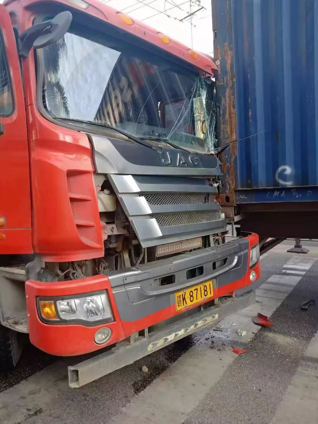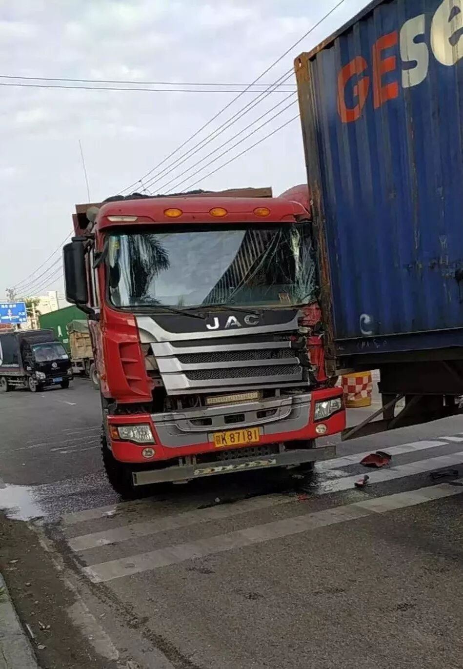 今天早上七点多钟(2019年10月24日),在国道G324线陆丰博美路段与博碣路交汇处,发生一起交通事故,一辆载石碎的泥头大车追尾一辆长挂蓝色货柜车,泥头大车自身车头受损严重,交通一度受阻塞车,交警到场处置!事故详情待官方公布为准!