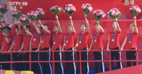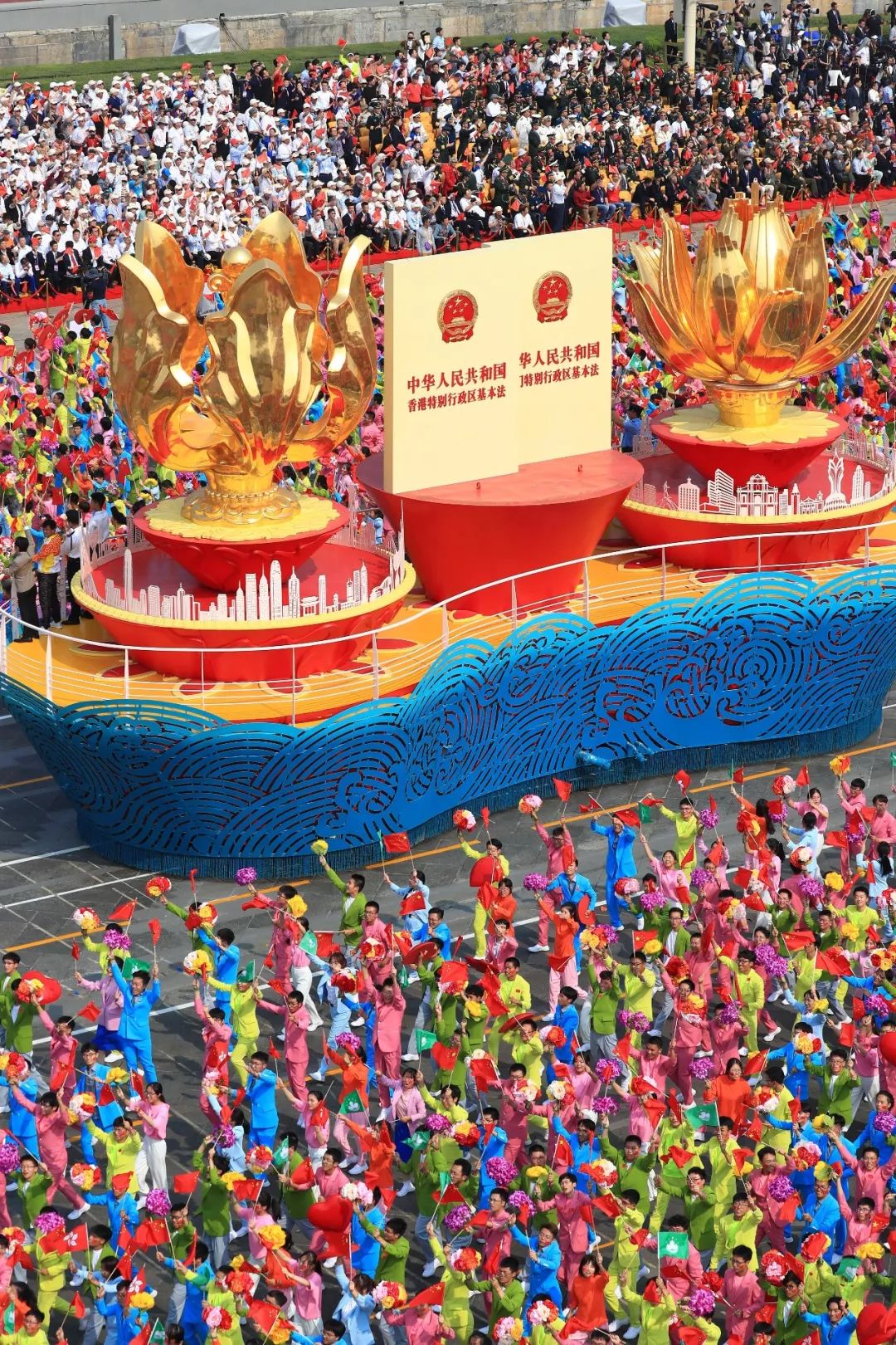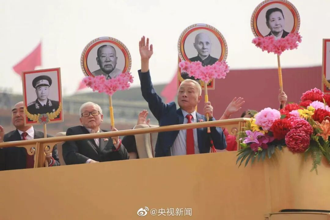 在国庆游行的彩车上压轴亮相