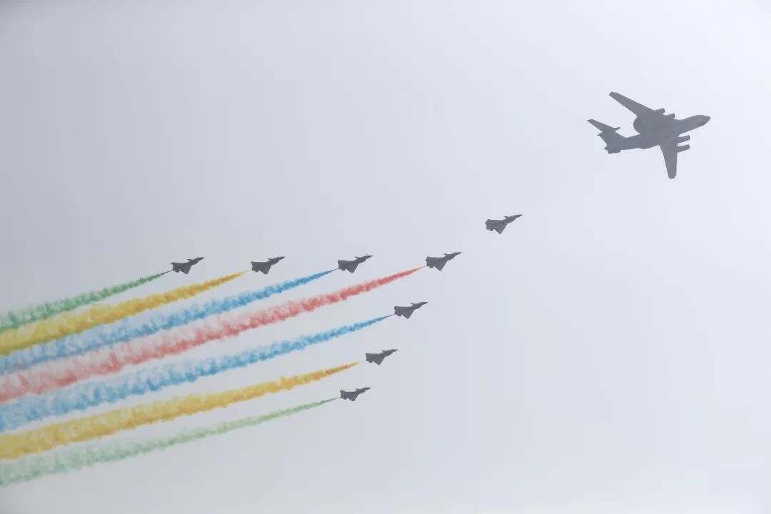 当空中梯队气势磅礴地飞过
