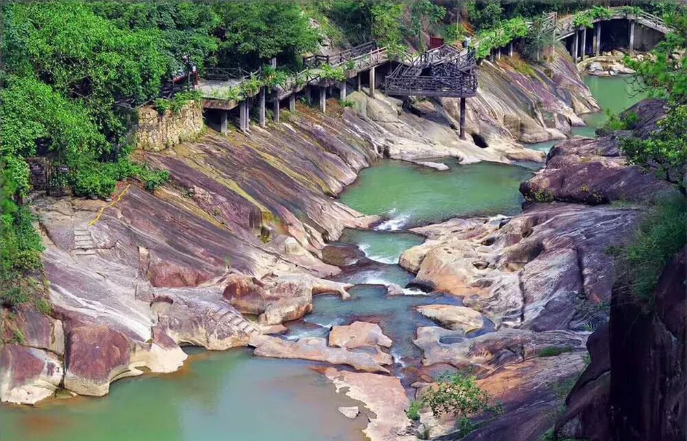 青岚溪谷的冰臼群,分布于广东省饶平县樟溪镇青岚溪谷的形态各异的石头,被中国地质学院教授勘查考证后确认是冰臼。