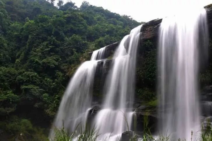 黄满磜瀑布群位于广东省揭阳市揭西县京溪园粗坑村粗坑河上游,河水至此奔流直泻,形成宽八十米,落差近百米的天然瀑布。享有“岭南第一瀑”的美誉。