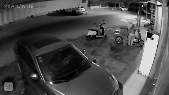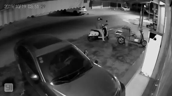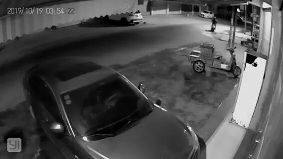 2019年10月19日凌晨 03:51 左右,在陆丰市博美镇八万路口附近某店铺门口,监控拍下了这一幕: