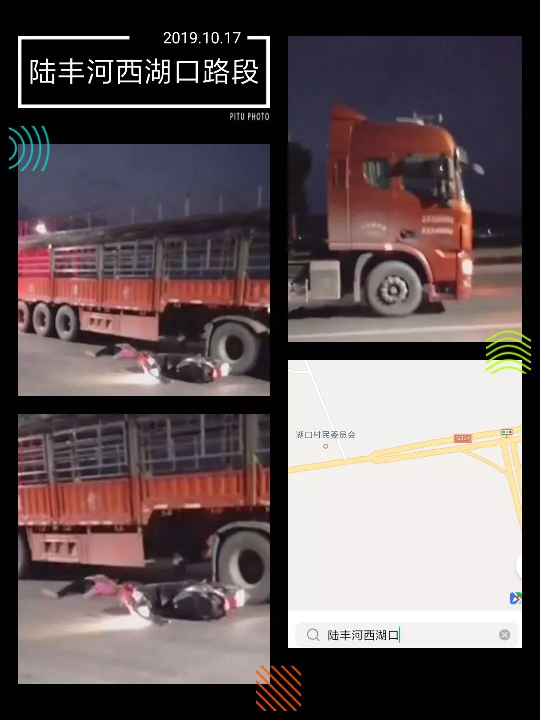 10月17日晚上,国道G324陆丰河西湖口路段(新324国道进出口处,潭西往东海方向)发生一起交通事故,一女子倒在一辆拖头车车轮下,一动不动,伤情不详,交警部门已到现场处理,详情请以官方发布为准。