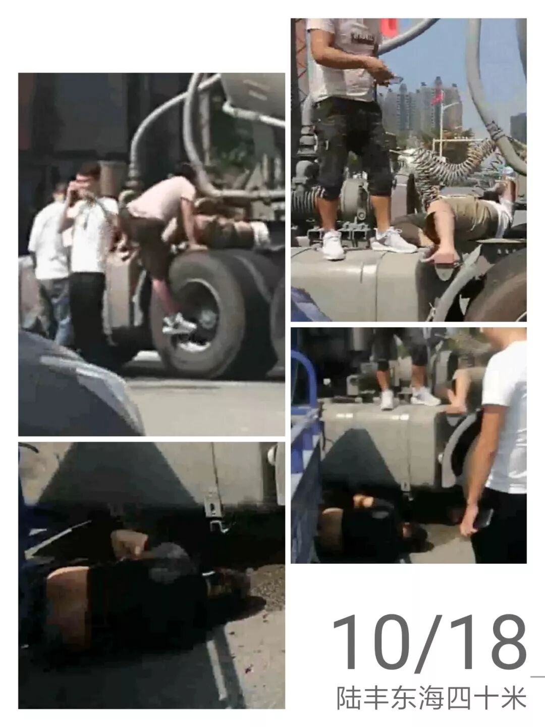 2019年10月18日在陆丰东海四十米与新国道十字路口发生一起车祸,视频中可见一辆三轮车与一辆拖头相撞,三轮车上两名男子受伤,一人躺在大货车油箱与车轮处,一人倒在地上。好心路人赶紧上前查看情况。
